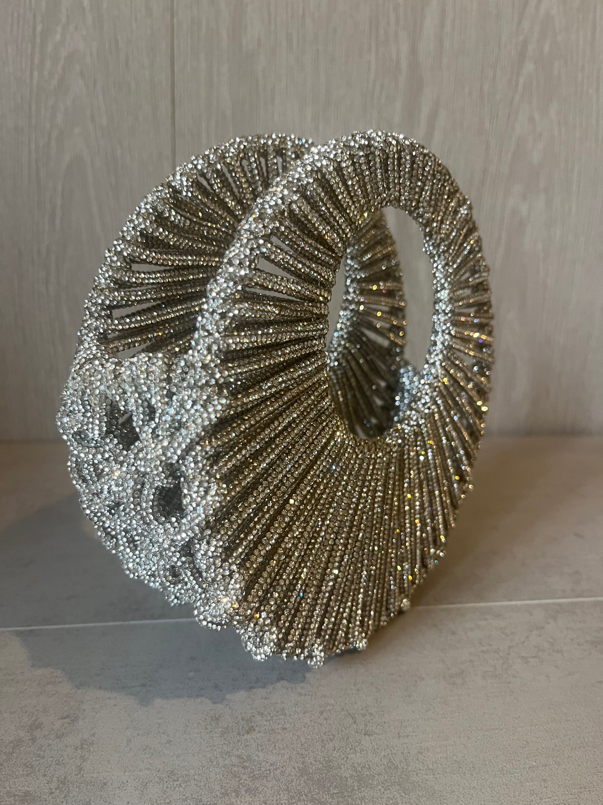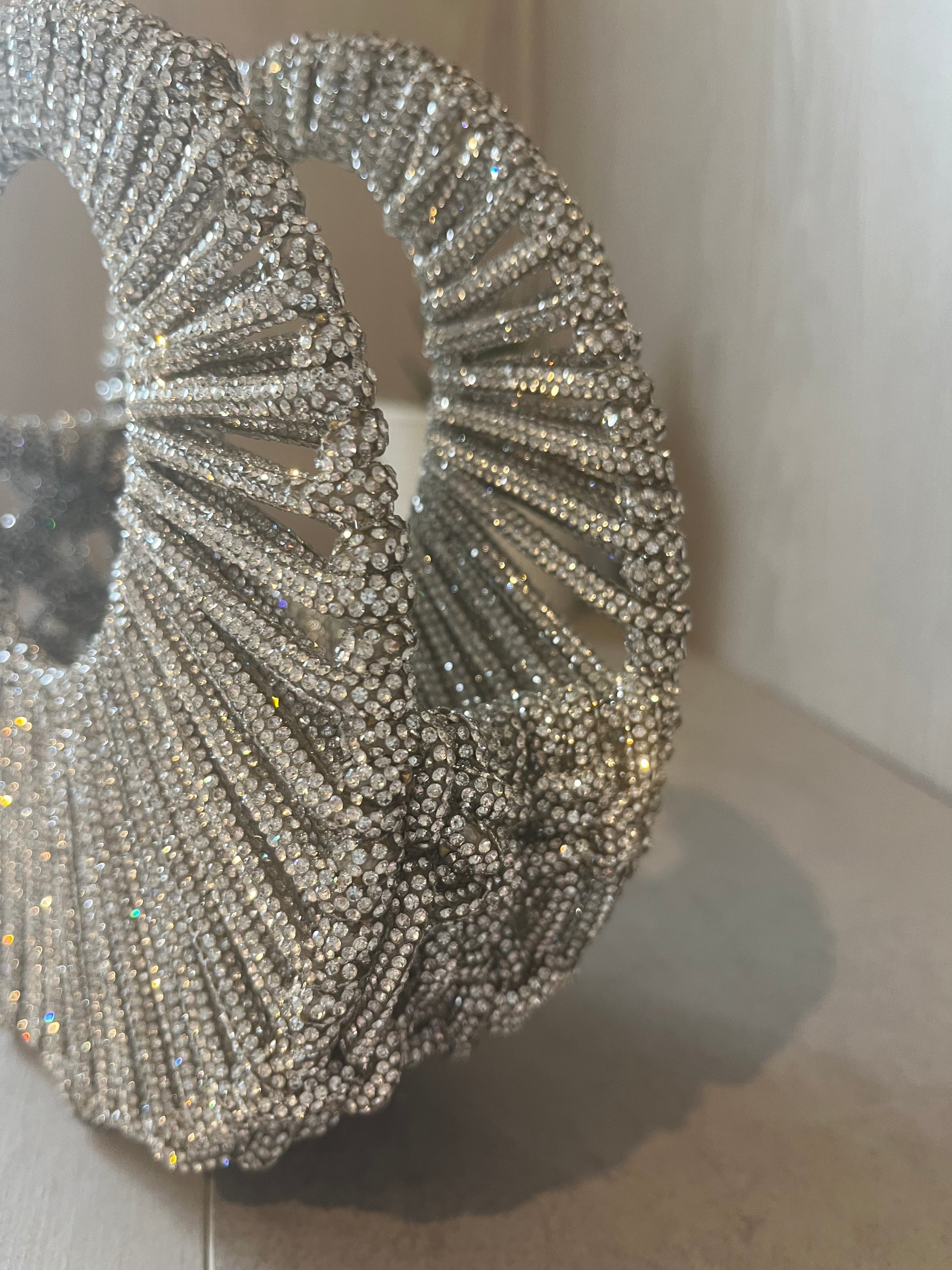 Descubre el encanto de este bolso, una pieza que combina elegancia y versatilidad. Su diseño circular y sus destellos de cristal aportan a esta pieza lujo y glamour. Incluye un saquito interior extraíble, perfecto para colocar tus pertenencias con estilo y comodidad.