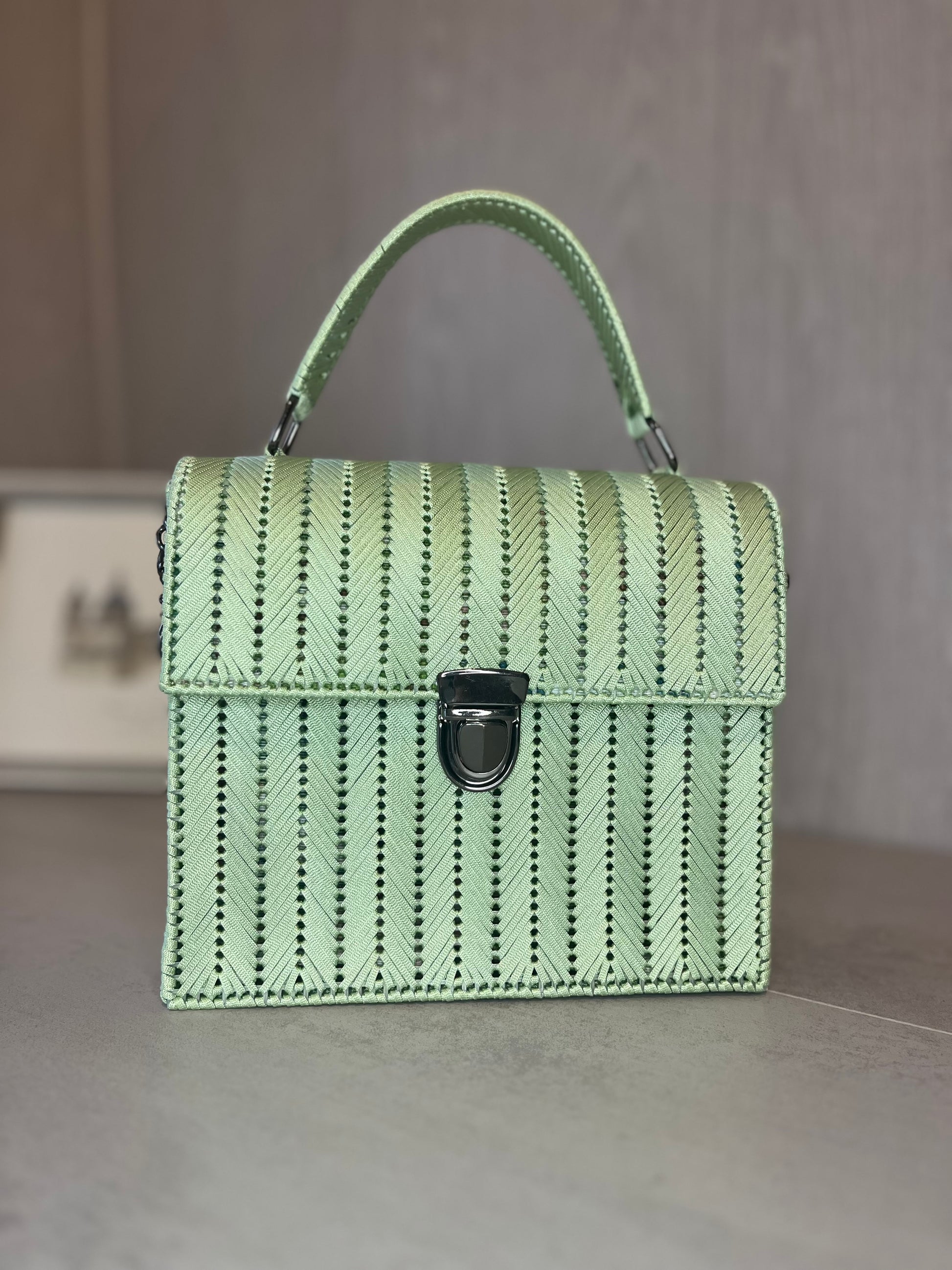Este bolso espiga es el accesorio que transforma cualquier look en un conjunto moderno y chic. Lleva contigo la textura, el estilo y la calidad que marcan la diferencia y convierten cada salida en una ocasión especial.