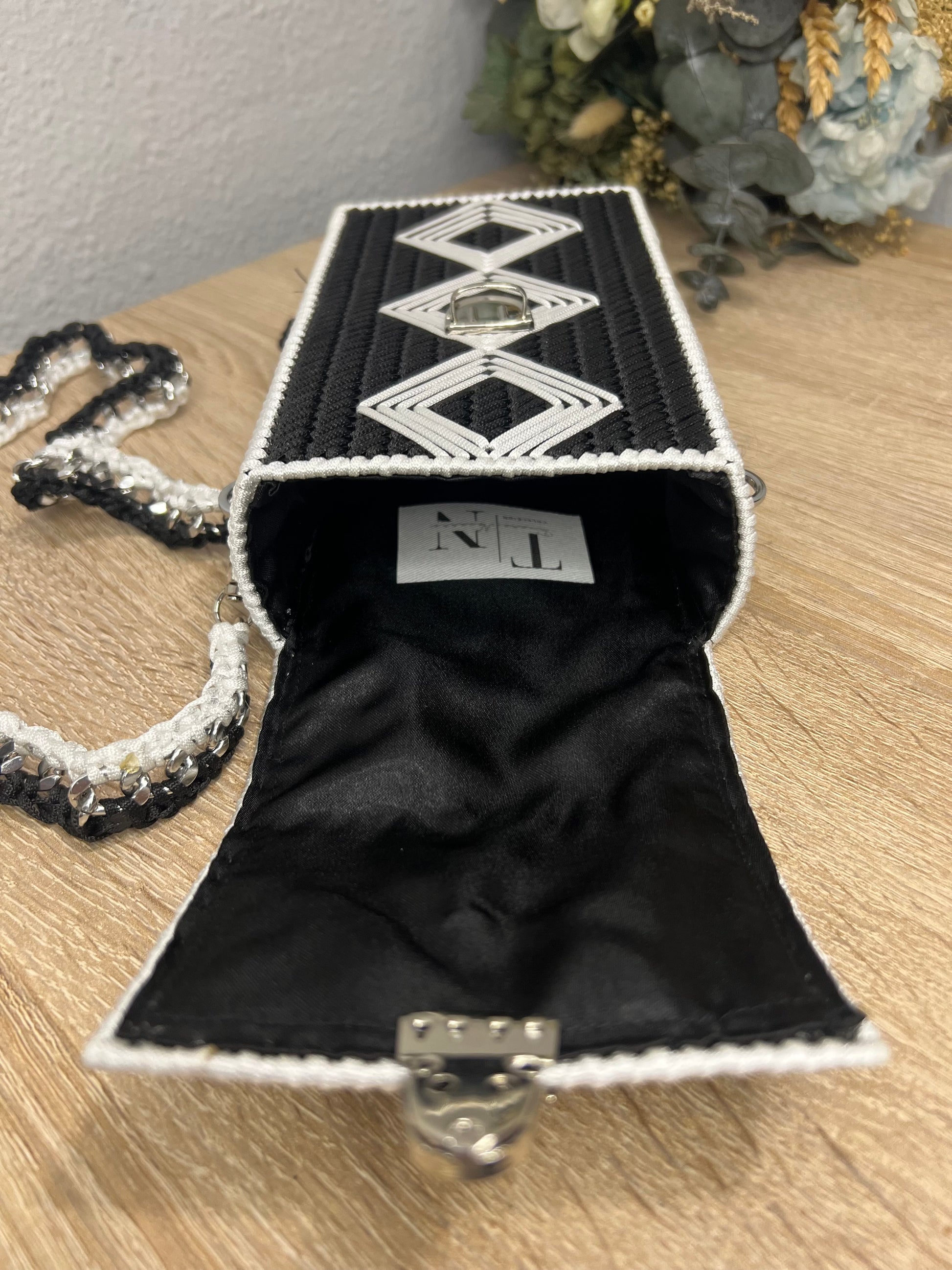 Nuestro Bolso Mini Élise es una pieza pequeña, pero llena de encanto, que combina la profundidad del color negro con delicados detalles en blanco, creando un contraste elegante y atemporal. Su diseño artesanal aporta un aire sofisticado y refinado, ideal para elevar cualquier look con distinción.